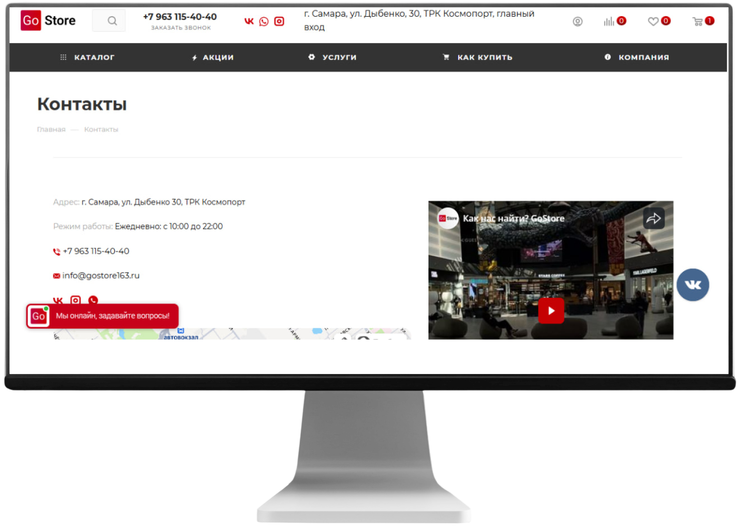 - адрес офлайн-магазина (г. Самара, ТРК «Космопорт»);